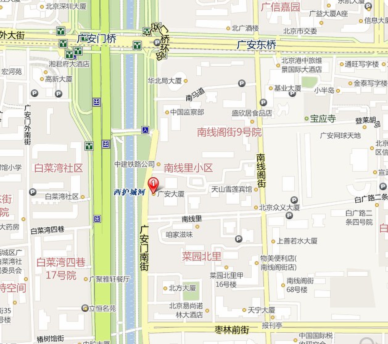 3、從南向北走:南二環(huán)至西二環(huán)白紙坊橋出口出去,往東(右轉(zhuǎn)),第一個紅綠燈往北(左轉(zhuǎn)),沿河邊一直往北走,北方工業(yè)公司向北200米,馬路右邊廣安大廈即到。