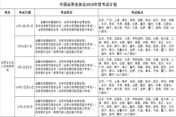 詳情可查看:中國證券業協會2018年度考試計劃公告