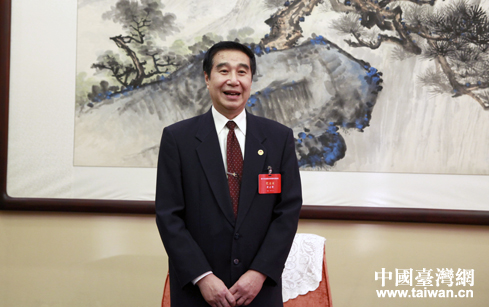 第十次全國臺灣同胞代表會議閉幕會在京舉行,新任中華全國臺灣同胞聯誼會會長黃志賢在會后接受記者采訪。(中國臺灣網 普燕 攝)