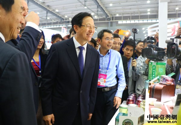 農(nóng)業(yè)農(nóng)村部部長韓長賦視察了海峽農(nóng)業(yè)合作展區(qū)。(中國臺灣網(wǎng) 郜利敏 攝)