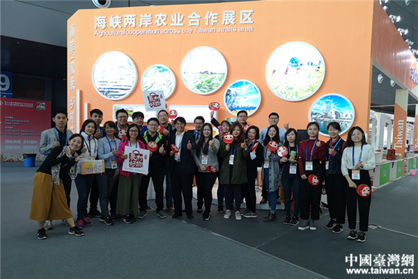 參展的16家島內(nèi)企業(yè)在海峽兩岸農(nóng)業(yè)合作展區(qū)合影,點(diǎn)贊農(nóng)交會(huì)平臺(tái)。(中國臺(tái)灣網(wǎng) 郜利敏 攝)