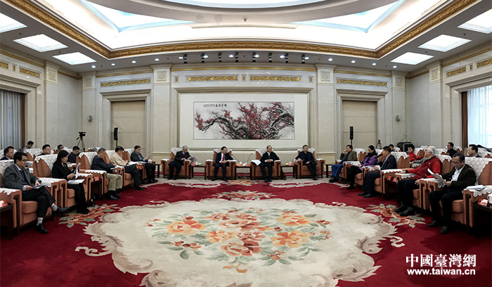 中國和平統(tǒng)一促進會8日下午在京舉辦理事座談會,認真學習貫徹習近平總書記在《告臺灣同胞書》發(fā)表40周年紀念會上的重要講話精神。(中國臺灣網(wǎng) 普燕 攝)