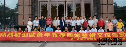 中國臺灣網6月19日湛江訊 近日,祖籍吳川的當代著名嶺南畫派大師、有“當今臺灣畫壇第一人”之稱的歐豪年先生在闊別故鄉吳川多年后,回鄉省親和開展文化交流活動,受到吳川市各界和父老鄉親的熱情歡迎和接待。