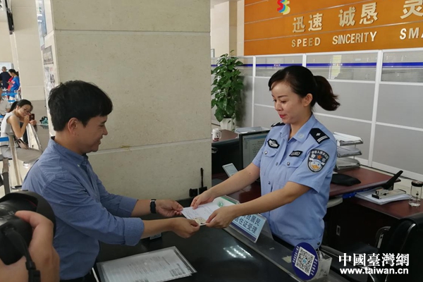 9月1日上午,在瀘州市公安江陽(yáng)分局龍透關(guān)派出所內(nèi)的業(yè)務(wù)辦理窗口,臺(tái)灣同胞趙均彧從民警手中接過(guò)了一張“港澳臺(tái)居民居住證領(lǐng)取憑證”,在20個(gè)工作日后,他將成功領(lǐng)取港澳臺(tái)居民居住證。“臺(tái)灣居民來(lái)往大陸通行證和大陸的居住證在證件號(hào)字碼上是不同的,所以,我們?cè)谶x擇坐高鐵、飛機(jī)的時(shí)候,時(shí)常會(huì)遇到無(wú)法到站自助取票的困難,另外,辦理港澳臺(tái)居民居住證后,對(duì)我將來(lái)購(gòu)買基金、保險(xiǎn)、甚至購(gòu)房都會(huì)有很大的幫助。”趙均彧說(shuō),他很早就開始關(guān)注港澳臺(tái)居民居住證的辦理情況,并主動(dòng)與瀘州市臺(tái)辦進(jìn)行聯(lián)系,希望自己第一時(shí)間就能辦理該證。