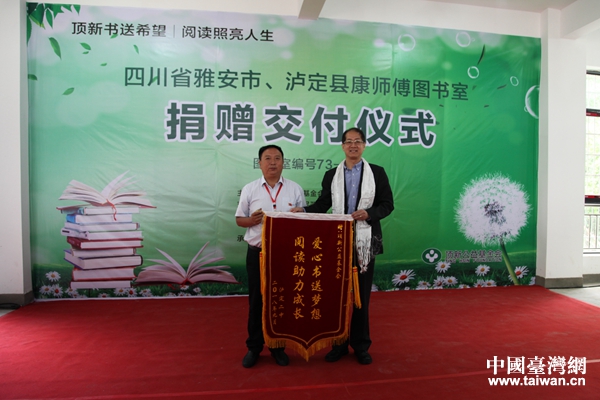 瀘定二中向頂新公益基金會(huì)贈(zèng)送錦旗。(圖片來(lái)源:四川省臺(tái)辦)