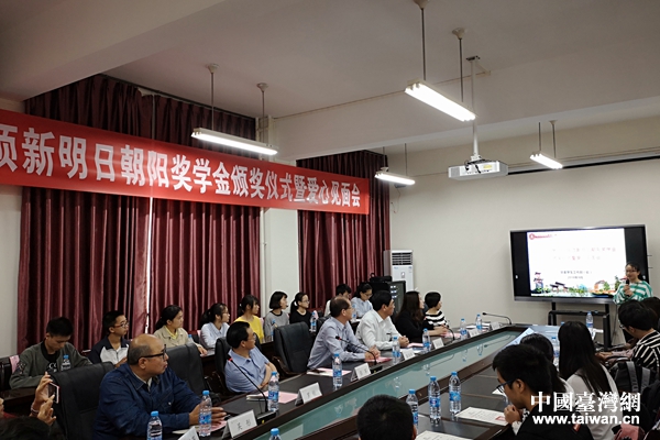四川大學(xué)2018年頂新明日朝陽(yáng)獎(jiǎng)學(xué)金頒獎(jiǎng)儀式現(xiàn)場(chǎng)。(圖片來(lái)源:四川省臺(tái)辦)