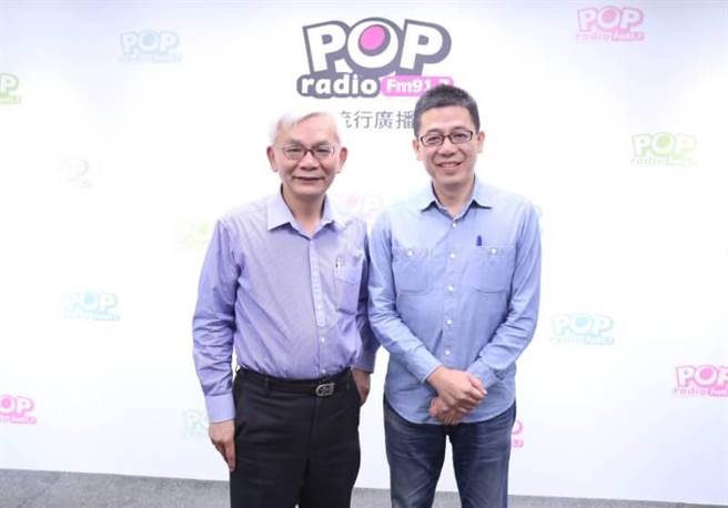 國民黨基隆市長參選人謝立功(右)19日上午接受電臺主持人黃清龍(左)訪問。(圖片來源:臺灣《中時電子報》)