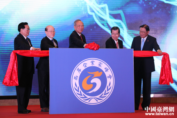 曾培炎、蕭萬長、江丙坤、王國生、劉結(jié)一共同啟動(dòng)論壇開幕裝置。(中國臺(tái)灣網(wǎng) 張亞靜 攝)
