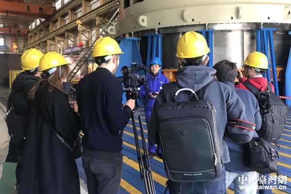 兩岸媒體人在哈爾濱電機廠采訪相關負責人。(中國臺灣網 李奕均 攝)
