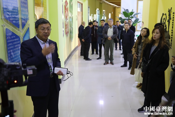 哈爾濱海峽兩岸技術移轉育成中心相關負責人楊喆向兩岸媒體人介紹相關情況。(中國臺灣網 李奕均 攝)