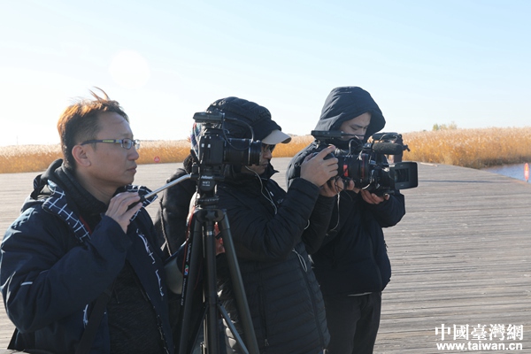 兩岸媒體記者在扎龍國家級自然保護區忙著拍攝。(中國臺灣網 李奕均 攝)