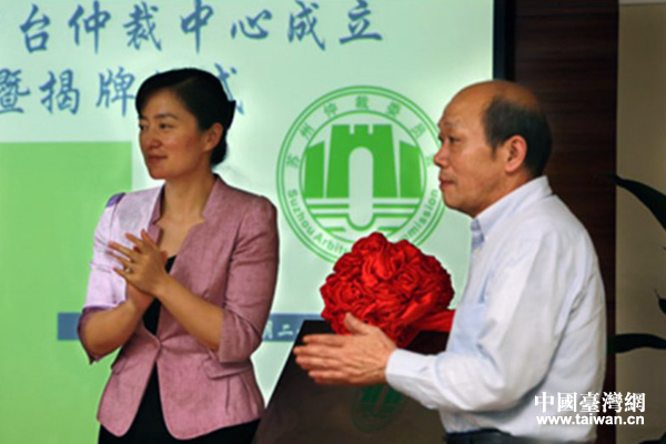 2013年5月29日,蘇州涉臺仲裁中心舉行成立揭牌儀式。(中國臺灣網發 蘇州涉臺仲裁中心供圖)