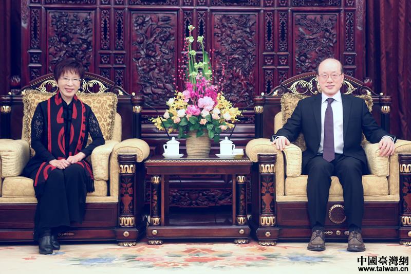 中共中央臺(tái)辦、國(guó)務(wù)院臺(tái)辦主任劉結(jié)一會(huì)見(jiàn)中國(guó)國(guó)民黨前主席洪秀柱。(中國(guó)臺(tái)灣網(wǎng) 扶海濤 攝)