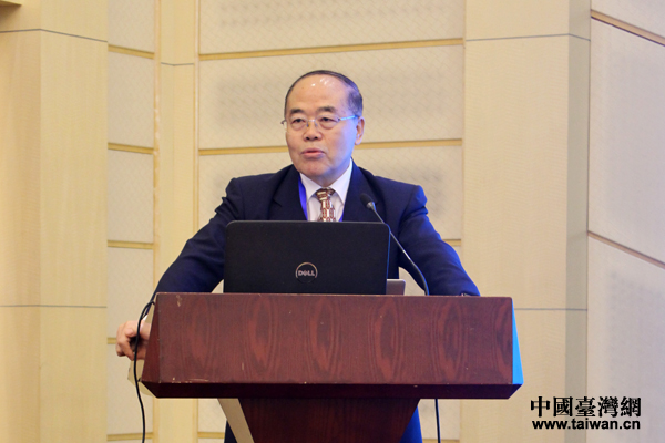 臺灣銘傳大學兩岸研究中心主任、教授楊開煌發表主題演講。(中國臺灣網 張潔 攝)