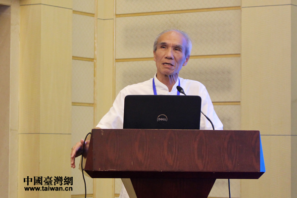 全國臺灣研究會常務理事、上海國際問題研究院特聘研究員周志懷發表主題演講。(中國臺灣網 張潔 攝)