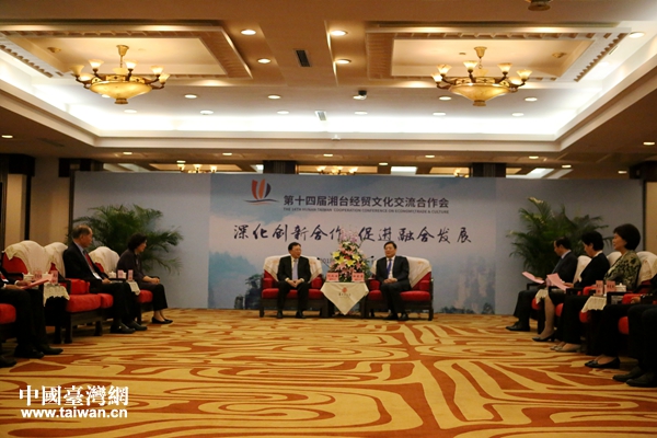 湖南省委書記杜家毫會見參加第十四屆湘臺會的臺灣嘉賓。(中國臺灣網 趙苗青 攝)