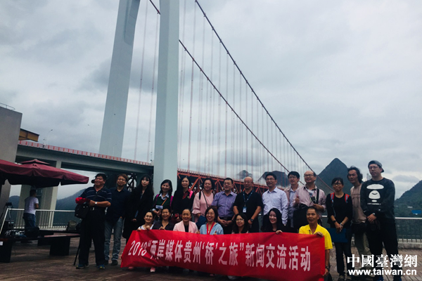 貴州“橋”之旅兩岸媒體人實地參觀壩陵河大橋。(中國臺灣網 發)