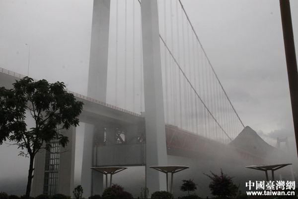 貴州省高速集團總工程師梅世龍為兩岸媒體人詳細介紹了壩陵河大橋,貴州數座世界級橋梁建筑的設計與建造都有他的參與。梅世龍說道,貴州省作為全國唯一沒有平原支撐的省份,在高速公路攻堅決戰過程中,“逢山開路,遇水搭橋”,所建橋梁覆蓋了梁橋、拱橋、懸索橋、斜拉橋等結構形式,幾乎包攬了當今世界上的所有橋型,“我們力爭在貴州省內建立‘高速平原’,讓貴州交通‘如履平地’”。