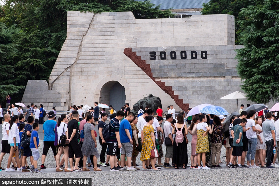 2018年8月15日,南京,紀念抗戰勝利73周年,參觀者在侵華日軍南京大屠殺遇難同胞紀念館參觀。