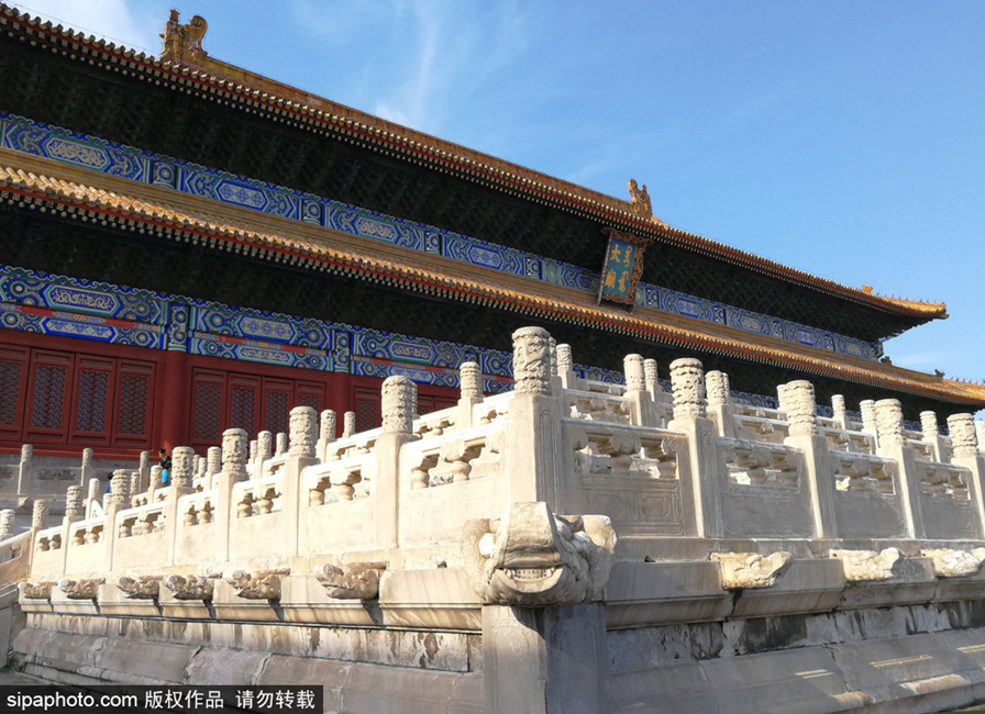 2018年8月16日,北京,北京勞動(dòng)人民文化宮,太廟600歲螭頭“長(zhǎng)蛀牙”。 “這些神獸該洗牙了!”參觀太廟過程中,游客對(duì)建筑上的神獸開起了玩笑。近日有市民反映,太廟建筑上的大多數(shù)獸頭牙齒發(fā)黑,好似患了“蛀牙”。專家判斷,石獸牙齒發(fā)黑多與自然因素影響有關(guān),但不能隨意清洗。