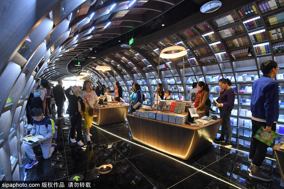 2018年11月4日,貴州貴陽,市民在鐘書閣書店內閱覽書籍。 有著"全球最美書店"之稱的鐘書閣于近日落戶貴州省貴陽市,作為全國示范帶動性的品牌民營實體書店,鐘書閣是一個集書店、本土民族特色文創產品、藝術文化展演與文化沙龍于一體的文化交流空間。貴陽店也是鐘書閣在全國的第十三個分店。至此,貴陽人民又多了一個暢游書海享受閱讀時光的好去處。 書店設計融入貴州獨有的喀斯特地貌,以山水、溶洞、少數民族圖騰構成貴陽鐘書閣的設計元素,把鬼斧神工的喀斯特地貌完美融入書店構造之中,讀者走入書店的瞬間便仿佛進入了神秘幽邃的溶洞,在黑色16間互相聯通又各自獨立的書房設計理念則來源于河圖洛書的古老智慧。此外,貴陽鐘書閣還專門設立了“貴州特色文化專區”,在這一頗具貴州本土特色的文化角落,鐘書閣將會定期舉辦知名作家的新書簽售會、讀書會、兒童領讀等活動,通過活動的方式,聚合更多的讀者和觀眾人群參與讀書文化交流,分享閱讀感受。吸引當地市民前來購書閱讀、拍照留念。據悉,鐘書閣曾被美國WIRED雜志評選出的“全球10所最美書店”之一;還曾榮獲世界上最具影響力的設計獎——意大利A設計大獎(A’Design Award&Competition)A’設計大獎賽是全球領先的國際年度設計比賽。