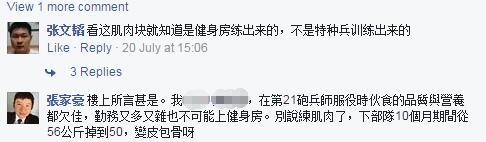然鵝,網友依舊不買賬,更有貌似曾當過兵的臺灣網友說,這肌肉一看就是健身房練出來的,因為服役時軍隊伙食差、勤務又多又雜,別說肌肉了不瘦成皮包骨就好了……