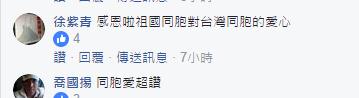 臺灣同胞紛紛點贊感謝大陸同胞的關心和鼓勵。(圖片截取自facebook)