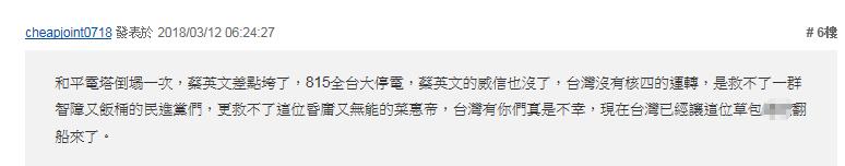 更有耿直的網友直接把矛頭對準蔡英文,“(廢核)還不如直接廢蔡英文比較快”、“老在空中畫餅,把臺灣人當傻子耍”。