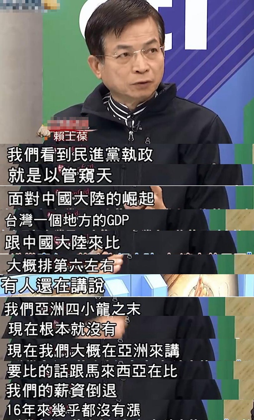 民代賴士葆就指出,臺灣薪資已經16年幾乎沒漲過,而在民進黨執政后更用“以管窺天”的心態因應世界大趨勢,“有人說我們是‘亞洲四小龍’之末,現在根本就沒有”。他更強調,如今大陸已經崛起了,而臺灣的GDP在大陸只能排第六或第七而已;黃智賢也直言,人家那“三小龍”并不承認臺灣是第四小龍,“叫做臺灣是一條蟲”……