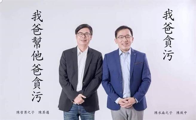 陳水扁兒子陳致中和民進黨高雄市長參選人陳其邁合拍宣傳照,慘遭惡搞KUSO。(圖片來自臺媒)