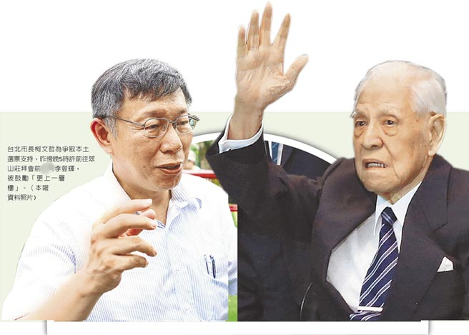 李登輝勸進柯文哲選臺灣地區領導人。(圖片來源:臺灣《中時電子報》)