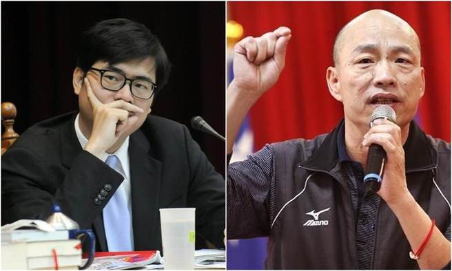 民進黨高雄市長參選人陳其邁(左)、國民黨高雄市長參選人韓國瑜(右)