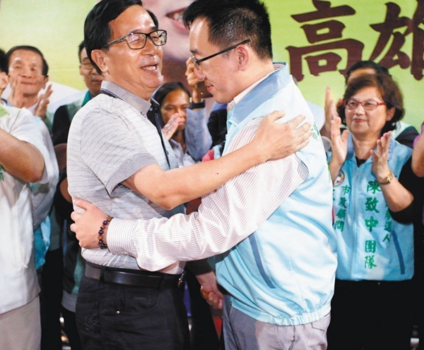 陳水扁預(yù)告要出席兒子陳致中競(jìng)選總部成立大會(huì)。(圖片來(lái)源:臺(tái)灣《聯(lián)合報(bào)》)