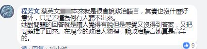 但也有網友對其表達了贊賞之情,“論說政治語言,蔡英文算是現今政治人物里的高桿了”。