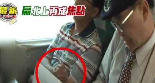 早前陳水扁乘高鐵北上,看到記者的鏡頭馬上伸出手來對(duì)著鏡頭抖。