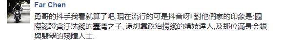 因“重病”而保外就醫(yī)的阿扁,出獄后只有在面對(duì)鏡頭時(shí)才會(huì)上演“影帝級(jí)”的“手抖”戲碼,其余的時(shí)間也并沒有忙著治病,而是頻頻介入政局,不僅為參選高雄市議員的兒子陳致中上臺(tái)造勢(shì),還接受了日本媒體的訪問,又開了個(gè)人臉書化身“勇哥”“勇弟”大談?wù)尾徽f,更幾次三番的公然挑釁蔡英文當(dāng)局……10日陳水扁又因接到“雙十慶典”邀請(qǐng)函卻被“高層”勸導(dǎo)不能與會(huì)一事而再次“龍顏震怒”,上演了大罵蔡當(dāng)局“裝肖維(肖維:瘋子,神精病)!”的一幕。