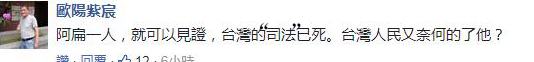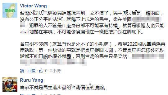 更有人表示“讓阿扁回監(jiān)已是人民共識(shí),否則臺(tái)灣‘司法’蕩存”,但不少人則是哀嘆,由阿扁一人已可見證“臺(tái)灣‘司法’已死”、“臺(tái)灣‘司法’被民進(jìn)黨玩弄到一文不值”;
