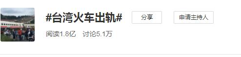 與此同時(shí),大陸網(wǎng)友對(duì)此事件也高度關(guān)注,#臺(tái)灣火車(chē)出軌#話(huà)題更在第一時(shí)間登上熱搜,截止發(fā)稿時(shí),該話(huà)題閱讀量已達(dá)1.8億次、被討論5.1萬(wàn)次。