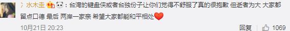 而面對(duì)小部分不理性的聲音,有網(wǎng)友也呼吁大家“不要變成網(wǎng)絡(luò)暴民”、“逝者為大”、“兩岸一家親”;
