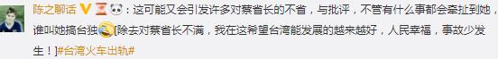 還有大陸網(wǎng)友聽(tīng)說(shuō)出事列車(chē)是日本造,不禁喊話(huà)對(duì)岸的兄弟“用咱自己家的(列車(chē))啊”,同時(shí)還發(fā)出“早日回歸祖國(guó)吧”、“國(guó)家趕緊統(tǒng)一,這樣大陸就能把最先進(jìn)的技術(shù)傳送過(guò)去啦”的呼喚;