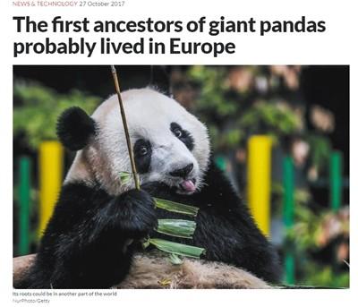 《新科學家》關于匈牙利發現熊貓化石的報道。圖/外媒網站截圖