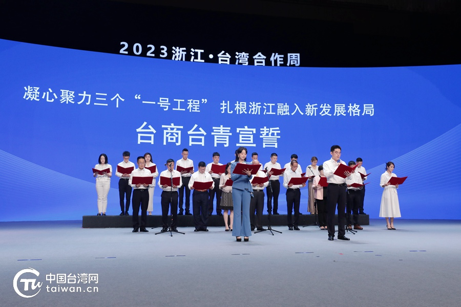 臺胞臺青在2023浙江·臺灣合作周開幕式現場進行宣誓。(中國臺灣網 尹賽楠 攝)