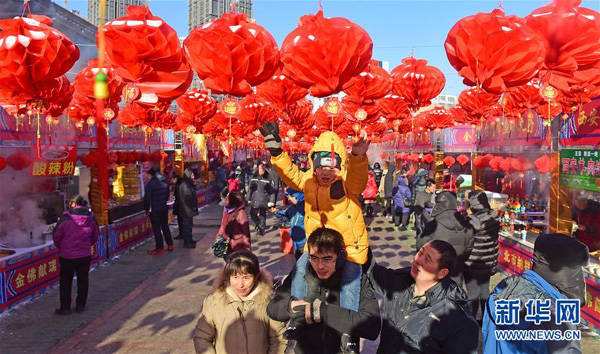 1月30日,游客在廟會上參觀游玩。當日是正月初三,在第36屆沈陽新春祈福皇寺廟會上,市民逛廟會、看表演,歡度春節。新華社記者 楊青 攝