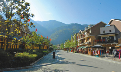 新映秀鎮(zhèn)街景。 本報(bào)記者 陳斌攝