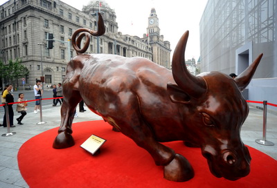 5月中旬上海外灘剛剛落成一尊紅銅色的“外灘金融!钡袼,與其隔江相對的,是上海最富活力的陸家嘴金融區(qū)。陸家嘴和外灘是上海的金融機構(gòu)聚集地,而外灘曾是整個遠東的金融中心。盡管歷史不再,上海重返國際金融中心的步伐從未停歇。