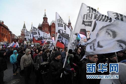 3月5日,普京支持者在慶祝活動中。新華社記者 李勇 攝