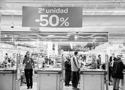 在精打細(xì)算的購物模式下,折扣成為西班牙人購物的關(guān)鍵詞,帶火了西班牙一批折扣網(wǎng)站。有調(diào)查顯示,西班牙折扣網(wǎng)站業(yè)去年的營業(yè)額為6億歐元,比2010年增加了19%。為了更好地利用不同超市和商店推出的特價(jià)優(yōu)惠,消費(fèi)者會(huì)在購物前把不同商家的特價(jià)情況列成單子,拎上購物袋跑幾家超市,把東西買全。