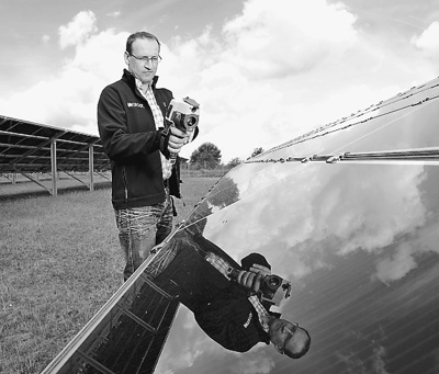 德國太陽能項目安裝商沃爾索公司的員工在檢測太陽能電池板的工作效率。圖片由沃爾索公司提供