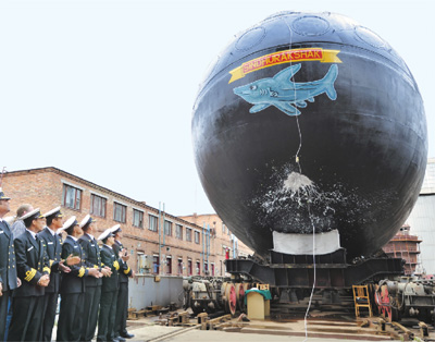俄羅斯北德文斯克,“小星星”船舶維修中心,為印度海軍改裝的“辛杜拉克沙克”號(hào)柴電潛艇即將下水。人民視覺(資料圖片)