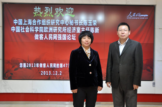 中國上海合作組織研究中心秘書長陳玉榮(左)、中國社會科學院歐洲研究所經濟室主任陳新